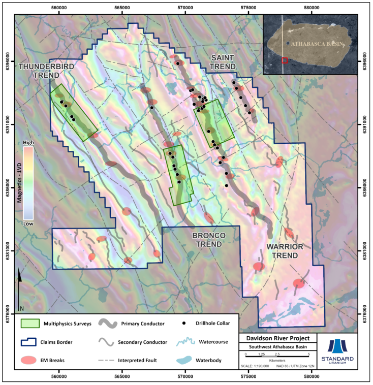 - First Multiphysics in SW Athabasca: Standard Uranium in partnership with Fleet Space Technologies Canada Corp. (“Fleet Space”) has executed the first Exosphere Multiphysics survey in the prolific southwest Athabasca Uranium District on the Davidson River project (Figure 1).