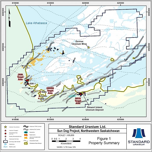 Standard Uranium is a mineral resource exploration company based in Vancouver, British Columbia. Since its establishment, Standard Uranium has focused on the identification and development of prospective exploration stage uranium projects in the Athabasca Basin in Saskatchewan, Canada. Standard Uranium's Sun Dog Project, in the northwest part of the Athabasca Basin, Saskatchewan, is comprised of 6 mineral claims over 15,770 hectares. The Sun Dog Project is highly prospective for basement and unconformity hosted uranium deposits yet remains largely untested by sufficient drilling despite its location proximal to uranium discoveries in the area.