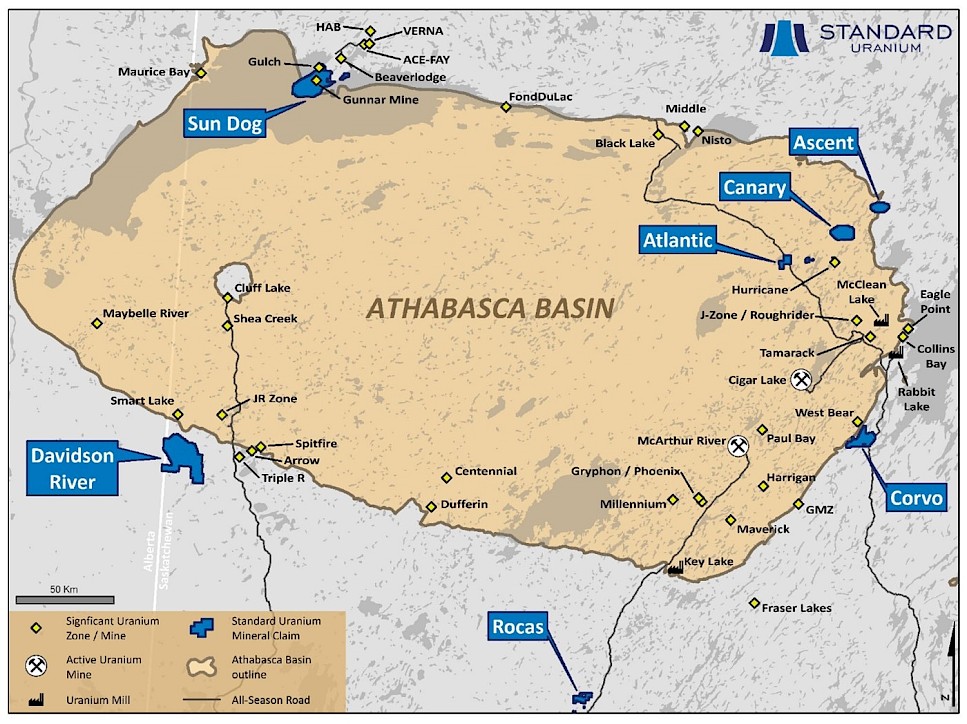 Figure 1. Overview map of the Athabasca Basin highlighting Standard Uranium’s seven exploration projects.