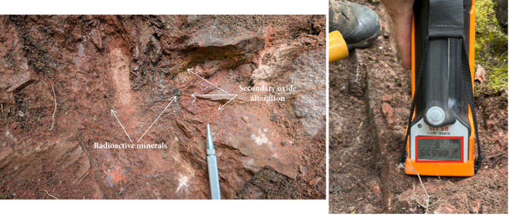 - A total of 112 handheld scintillometer readings of anomalous radioactivity >300 cps were recorded, including six measurements >10,000 cps at surface (Figure 4). Prospecting for radioactive boulders and outcrop was completed using handheld RS-120 Super-Scintillometers and RS-125 Super-Spectrometers manufactured by Radiation Solutions Inc.