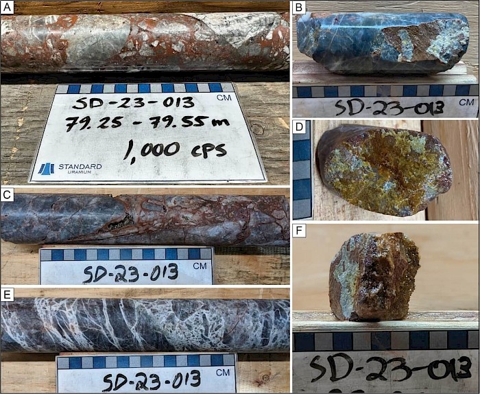 Samples collected for analysis are sent to Saskatchewan Research Council Geoanalytical Laboratories (“SRC”) in Saskatoon, Saskatchewan for preparation, processing and ICP-MS multi-element analysis using total and partial digestion, gold by fire assay and boron by fusion. Sandstone samples were tested using the ICP-MS1 uranium multi-element exploration package plus boron. Basement samples were tested with ICP-MS2 uranium multi-element exploration package plus boron. All sandstone samples, and basement samples marked as radioactive upon arrival to the lab were also analyzed using the U3O8 assay (reported in wt %). Basement rock split interval samples range from 0.1 to 0.5 m and sandstone composite samples are comprised of multiple equal sized full core “pucks” spaced over the sample interval. SRC is an ISO/IEC 17025/2005 and Standards Council of Canada certified analytical laboratory. Blanks, standard reference materials, and repeats were inserted into the sample stream at regular intervals in accordance with Standard Uranium’s quality assurance/quality control (QA/QC) protocols. Samples containing clay alteration have been sent to Rekasa Rocks Inc. in Saskatoon, Saskatchewan to be analyzed by Short Wavelength Infrared Reflectance (“SWIR”) via a Portable Infrared Mineral Analyzer (“PIMA”) to verify clay species. Geochemical assay results will be released as they are received and examined by the technical team in accordance with the Company’s internal quality control process.