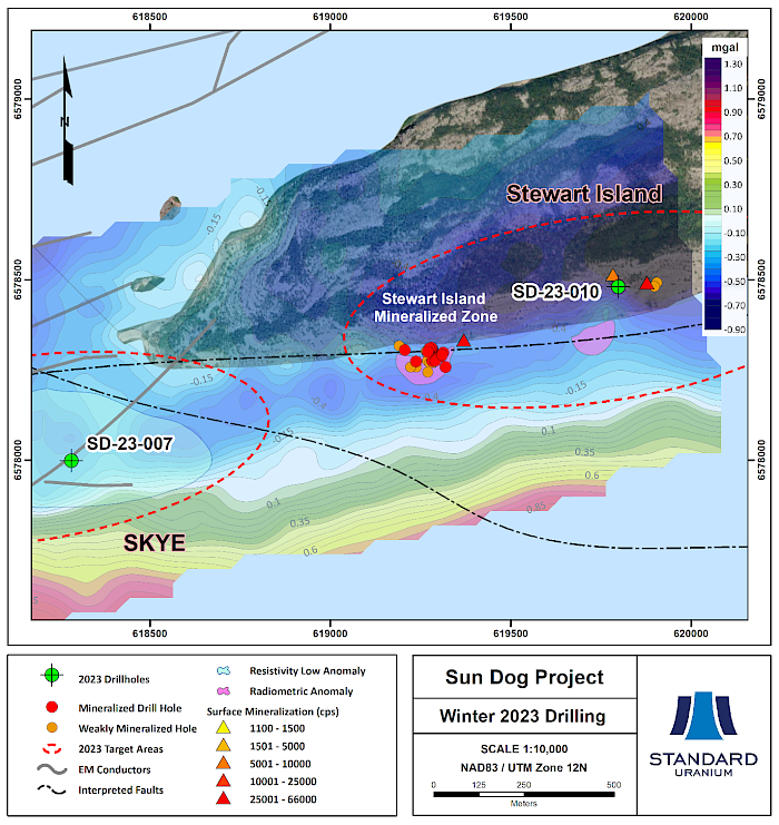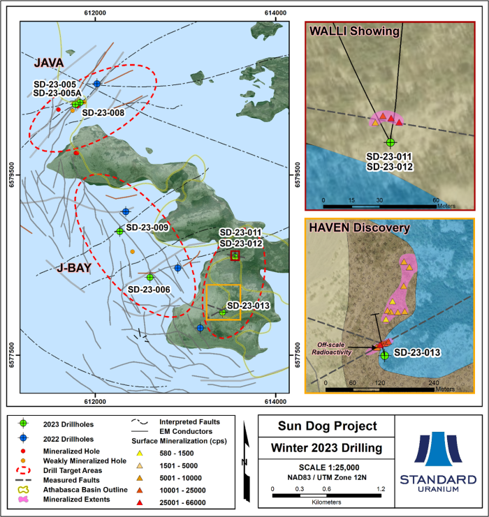 “I want to thank the geologists, drillers and all participants at the Sun Dog camp for their perseverance and dedication to complete this drill program under the extremely challenging winter conditions they faced this season,” said Standard Uranium’s President and CEO Jon Bey. “It is fantastic to see the results from the drill program that highlight that we are into a great alteration system that continues to improve with each exploration program. Our geologists are excited to get back to Sun Dog and it looks promising that we will add a second drill program focused on our Haven discovery and other Sun Dog land targets in the fall of 2023. I would also like to extend our appreciation to the local First Nations and northern communities for their cooperation and collaboration in the execution of our exploration efforts. We were once again pleased to host Ya’ thi Néné representatives during the program.”