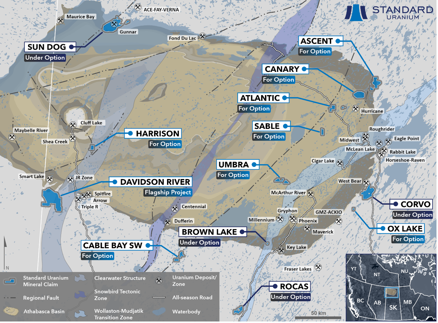 Figure 1. Athabasca Basin overview, highlighting Standard Uranium’s active projects.