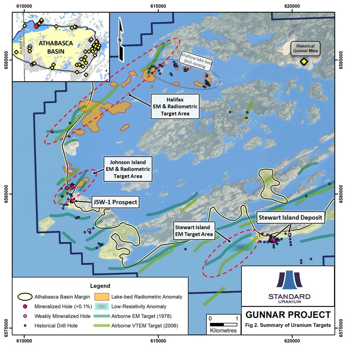 Neil McCallum, VP Exploration, states: “The Gunnar Project represents another addition of a high-quality uranium exploration asset to our portfolio, thereby bolstering Standard Uranium’s position as a leader in exploration for high-grade uranium mineralization in the Athabasca Basin. We look forward to advancing all of our projects as we seek to add value to our shareholders through discovery.”